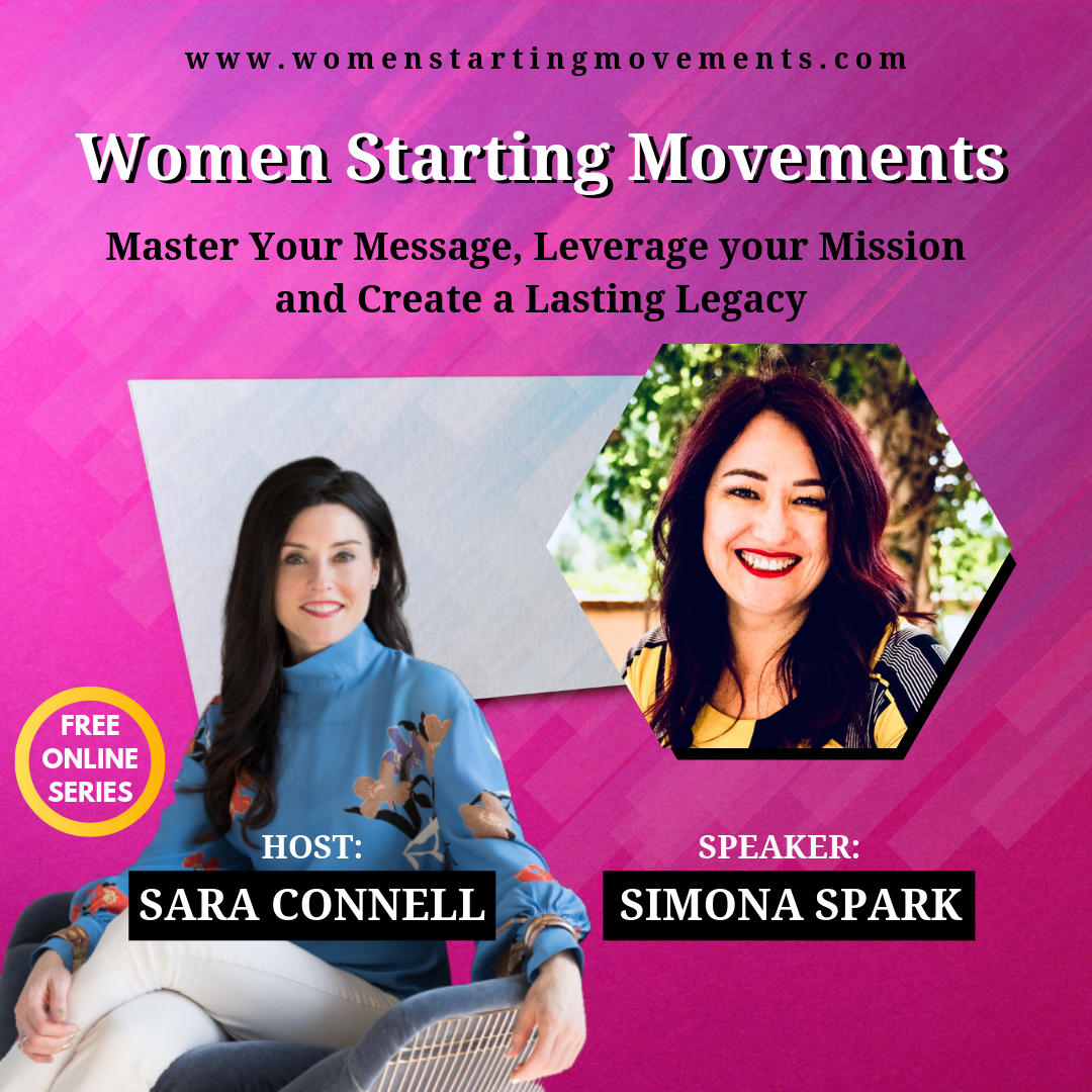 Join me as I am interviewed by Sara Connell, Bestselling Author and Writing Coach, host of the Women Starting Movements: Clarify Your Mission, Harness Your Power & Create a Legacy to Change the World. This is an online video series where 21 bestselling authors and thought leaders, activists, mothers and influencers will show you exactly how to reach a big audience and make a huge positive IMPACT with your mission. Whether you feel called to lead a movement of one, a family, a community or millions around the world, you don’t want to miss this. Gain FREE access to this exciting and educational video series here… >>YOUR LINK<<